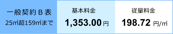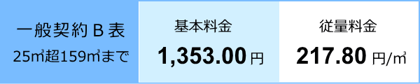 一般契約1ヵ月間のガス使用料が28立方メートルの場合は「B表」で算出します。